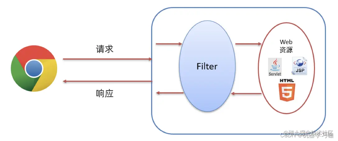 在访问到这些资源之前可以使过滤器拦截来下,也就是说在访问资源之前会先经过 Filter。