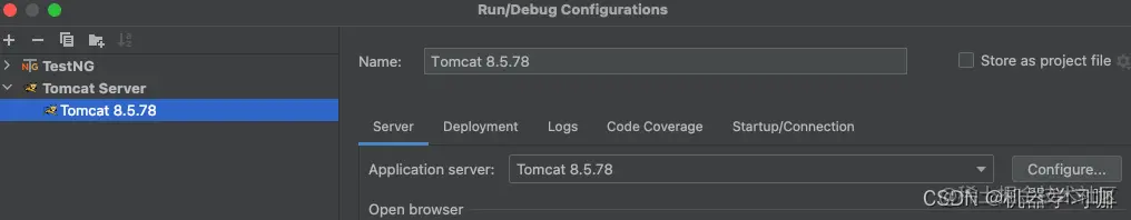 在run中选取Edit Configuration,添加tomcat,然后对tomcat进行配置。