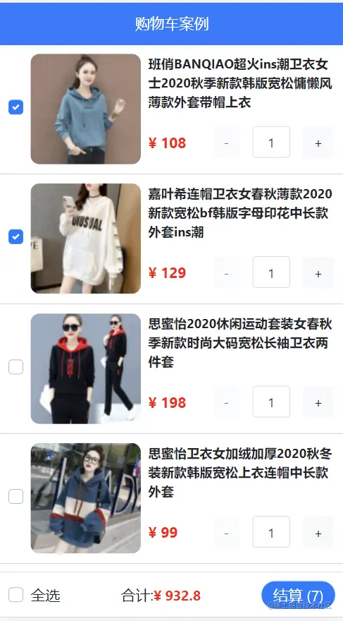 总结: 根据选中的商品和数量, 统计总价
