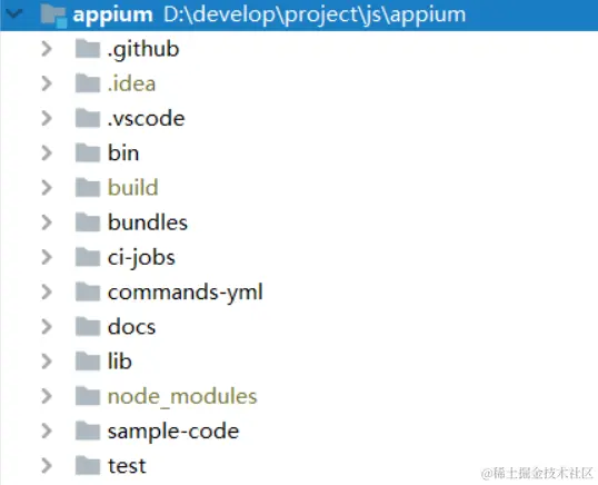 Appium 由 Appium 以及其它的工作引擎包括:appium-xcuitest-driver、appium-android-driver、appium-ios-driver、appium-uiautomator2-server、appium-base-driver 等组成。下载 Appium 这个项目进行分析,发现 Appium 有着非常复杂的目录结构,如下图: