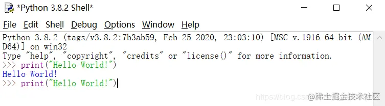 直接在python的IDLE中输入print("Hello World!")就可以打印出Hello World!
