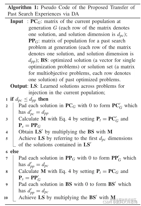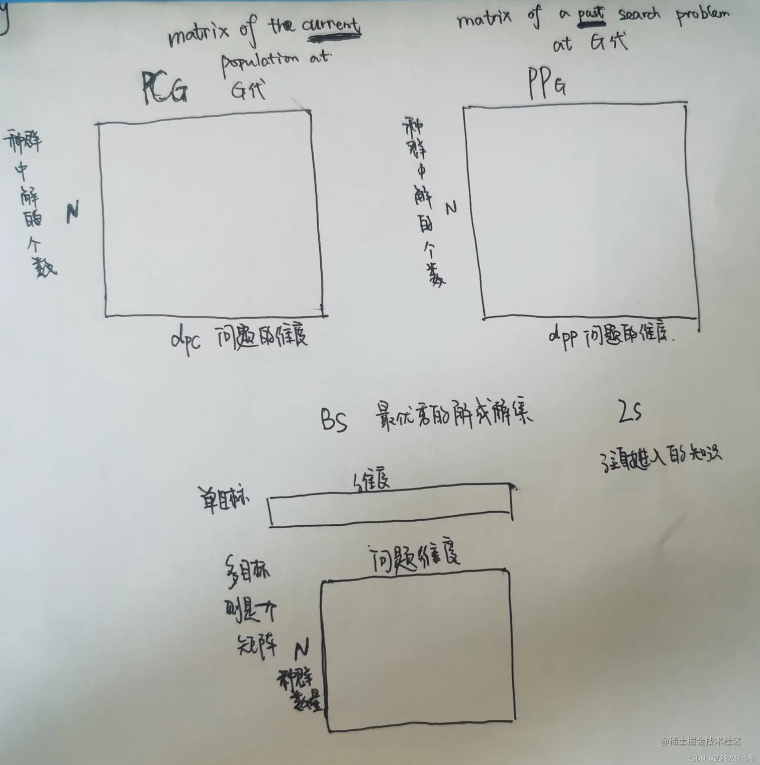 - input:PC_g表示当前任务g代,PP_g表示过去任务g代,BS最优秀的解/解集 (如果是单目标是一个解向量,多目标是一个矩阵,一行表示一个解,列表示解的维度),