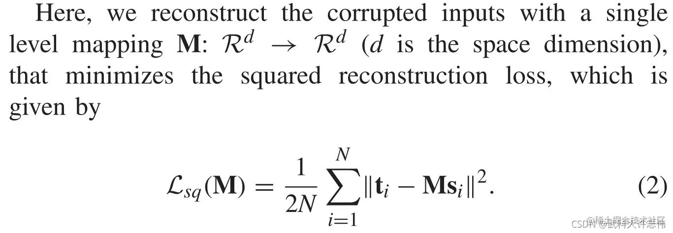 - DA是上述基本自动编码器的一个简单变体,它在将输入映射到隐藏表示之前破坏输入。通过最小化(1),对其进行训练,以从其损坏版本重新构建(或去噪)原始输入X。通常,隐藏表示将进一步用作机器学习的新表示