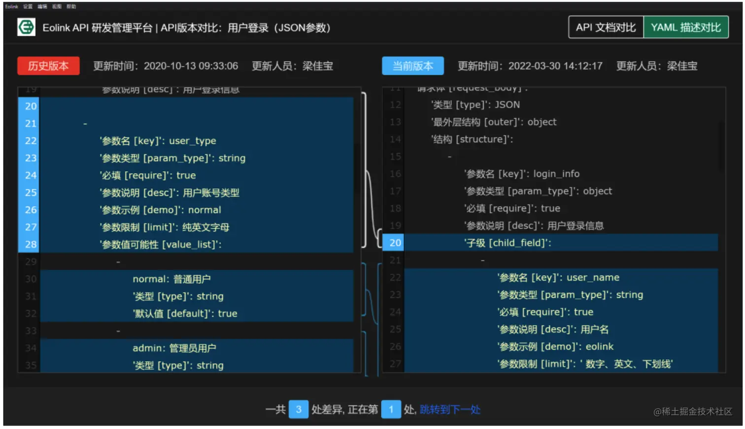 API历史版本比对