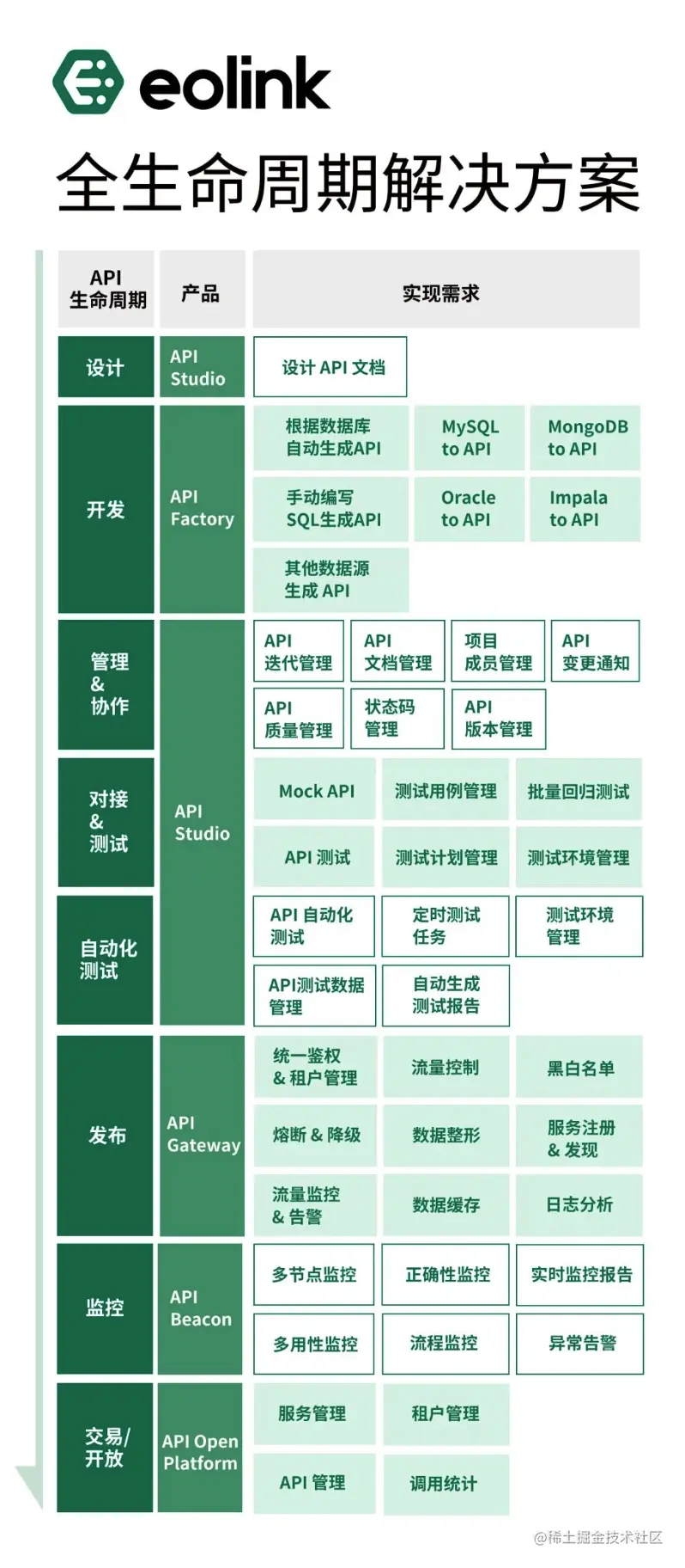 Eolink 除了 API 管理、自动化测试服务以外,还是全球首个API全生命周期管理的 SaaS 平台,提供包括 API 网关、API 监控、API 自动生成等服务。API-First 大势所趋,不掌握 API 全生命周期管理容易掉队!