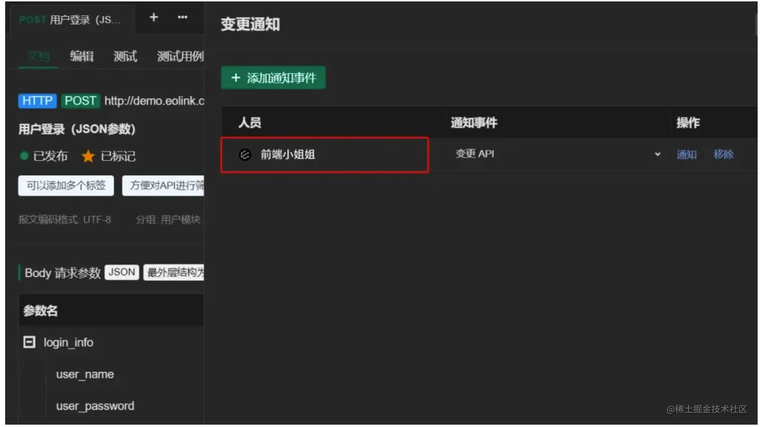 当 API 发生变化时通过邮件和站内信自动通知相关成员,并且已与QQ和飞书打通
