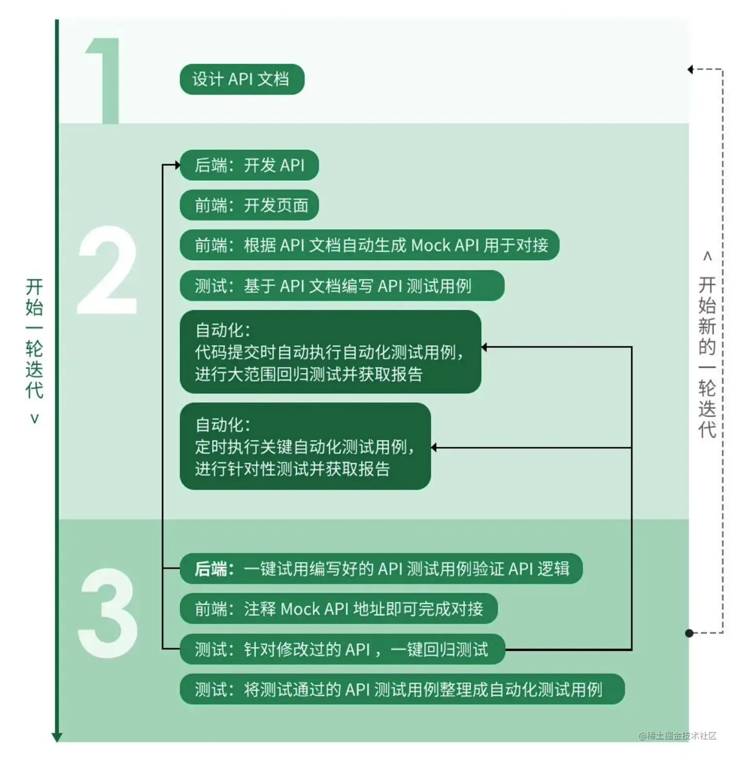 这套理念经过大量用户验证,逐步形成了以下的API研发测试流程,将后端、前端、测试等团队更好地结合在了一起