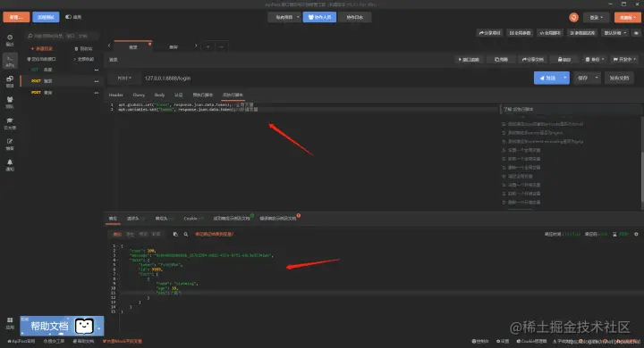 apipost提供了获取request和response方法,可以使用response方法获取响应返回的变量参数token