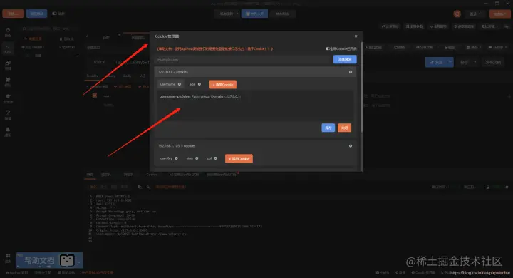 apipost还提供cookie管理可以自动存储,登录返回的cookie