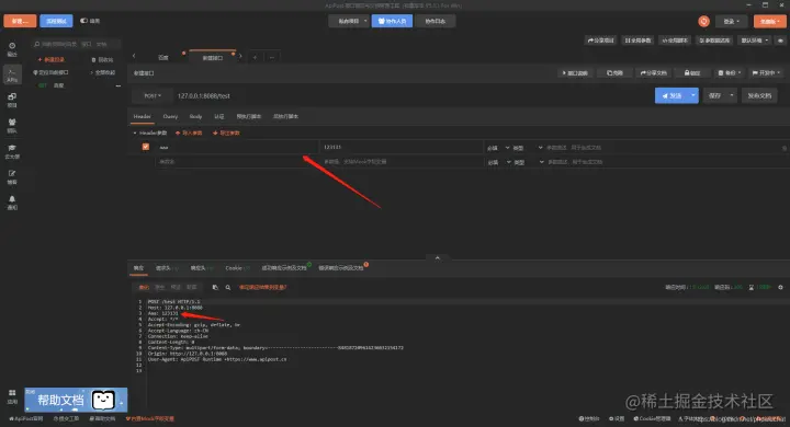 apipost可以快捷方便的进行接口测试,在需要需要使用header或者cookie的时候。apipost可以自定义header参数: