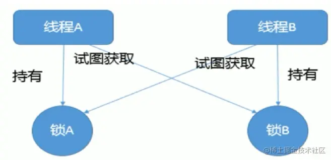 死锁就是多个线程争夺共享资源导致每个线程都不能取得自己所需的全部资源,从而程序无法向下执行。