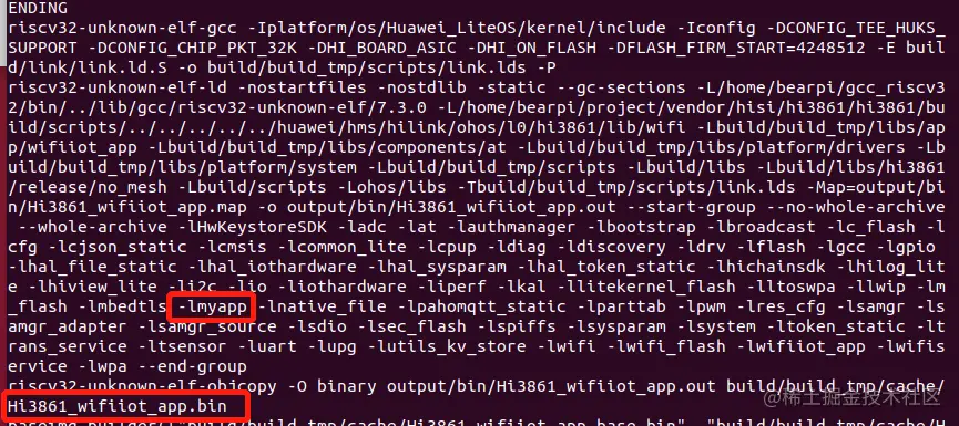 libmyapp.a 跟着众多 .a 文件被链接编译进 Hi3861_wifiiot.bin 文件。