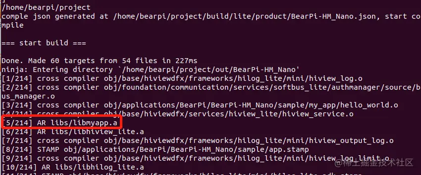 业务BUILD.gn 的 myapp 会将 hello_world.c 编译成 libmyapp.a 文件。