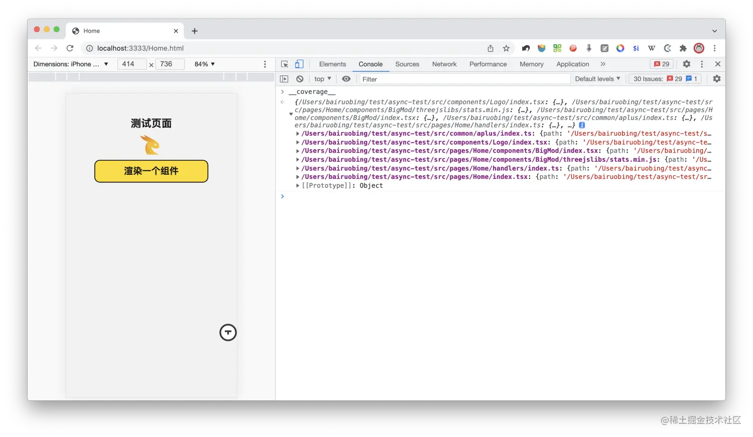 - 本地构建之后页面全局会注入__coverage__变量(可在页面控制台输出该变量检查插桩是否成功)