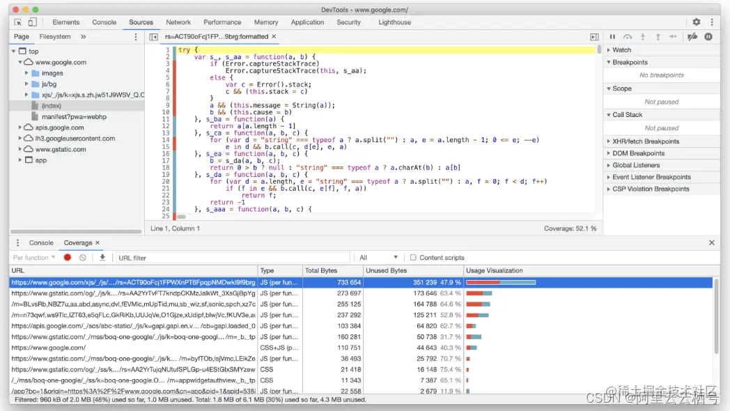 chrome 浏览器的 DevTools 给我们提供了度量页面代码(JS、CSS)覆盖率的工具 Coverage。