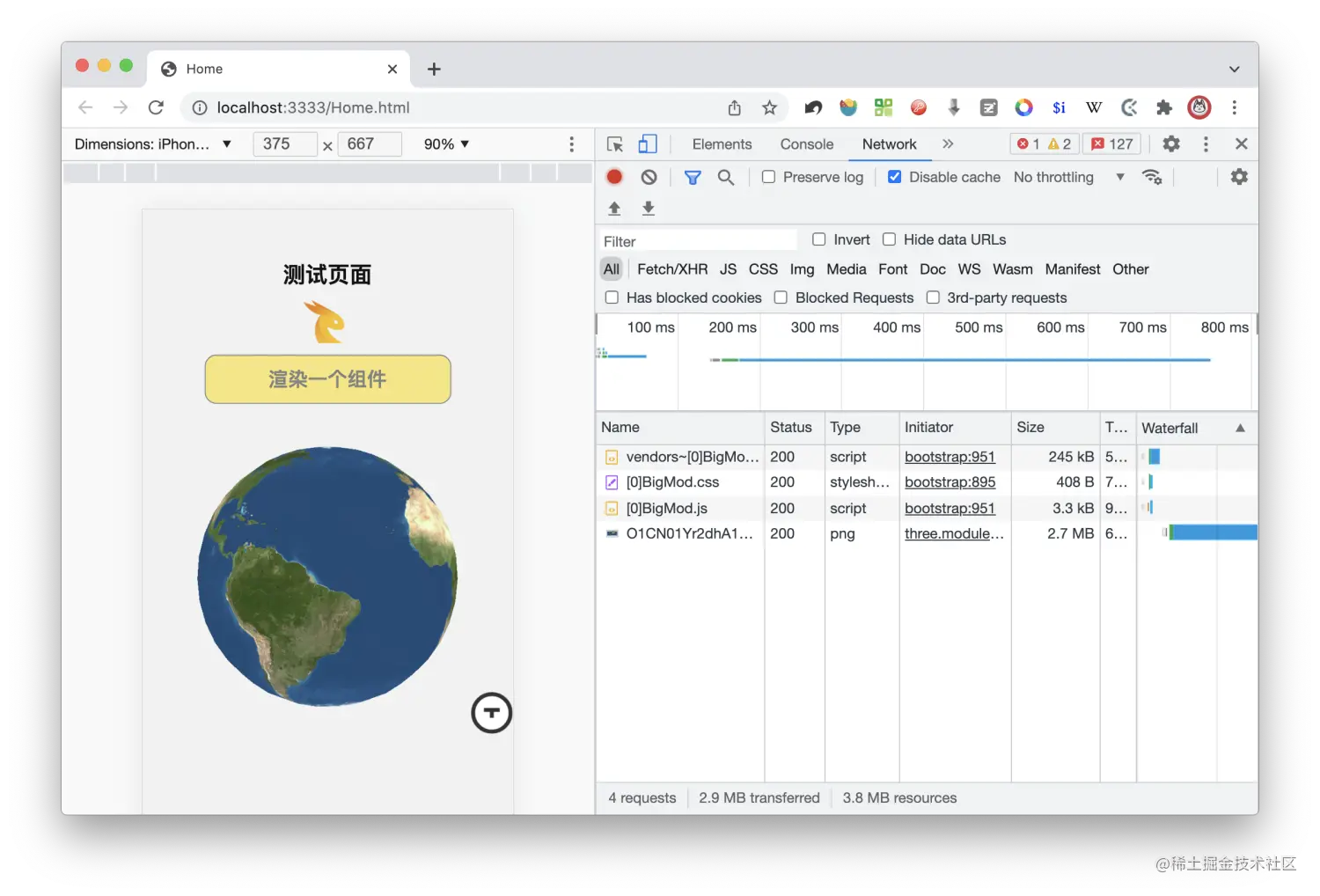 - 此时我们条件加载被异步化的组件会发现,BigMod 组件已经被动态的拆包引入了,页面主 js 包也得到了瘦身,搞定!