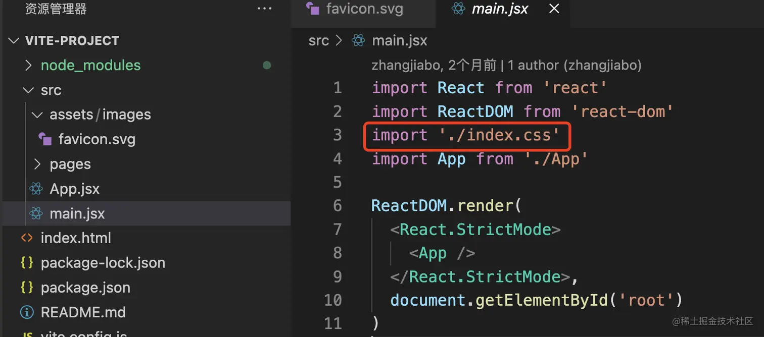 首先看一下这4个文件,为了结构清晰App.css,index.js,logo.svg可以先删除掉,然后在src下新建一个assets文件夹(我们可以把静态资源统一放到这里管理),在assets新建一个images文件夹然后将favicon.svg放到images文件夹里
