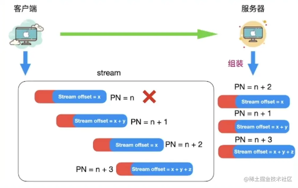 - TCP队头阻塞,重传这个包,后面的包都要等待,等重传成功了,后面的才能继续