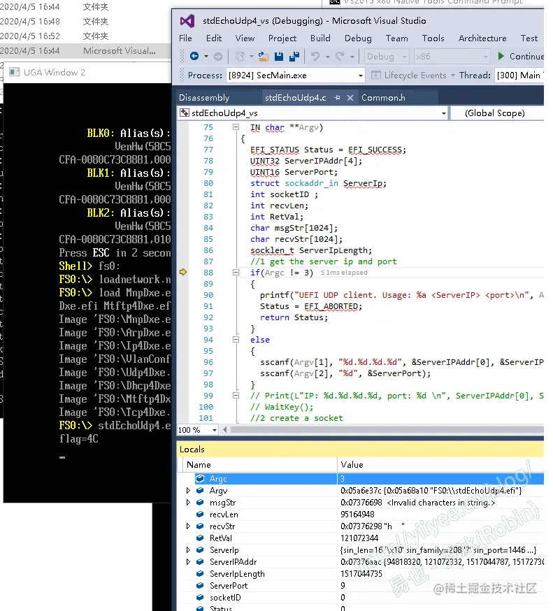以我的经验,使用Nt32Pkg编译出来的模拟环境,配合VS2015自带的调试器,能满足我至少90%以上的开发需求。除去那些必须要在硬件上调试,只能使用windbg/gdb进行双机调试之外,这是目前为止最好的调试方法了。