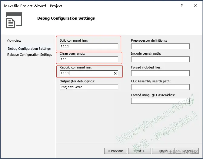 1) 建立VS的Makefile Project。 建立的过程中,在Debug Configuration Settings中随便填写字符串,方便后面修改。如图: