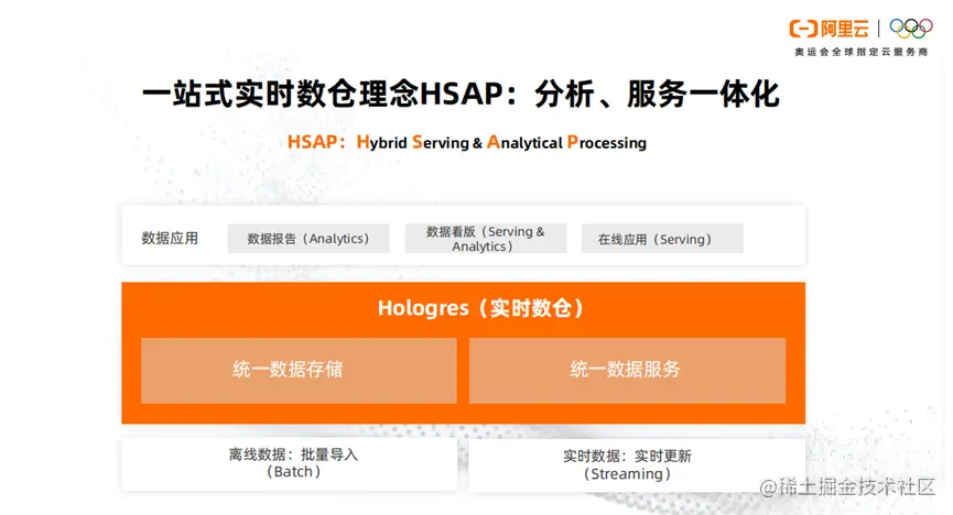 HSAP以数仓模型解决了数据服务的问题。HSAP主要应用在数据报告,数据看版,在线应用。能够统一数据存储,统一进行数据服务。除此之外,HSAP支持离线数据的批量导入,实时数据的实时更新。