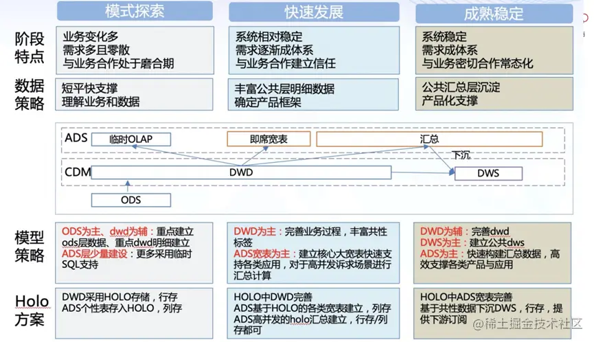 数据开发不是一蹴而就,一定要分阶段进行。大家一定要在不同阶段,使用不同的加工方式。第一阶段,一定以获取数据为主。短平快地支撑,理解业务和数据。