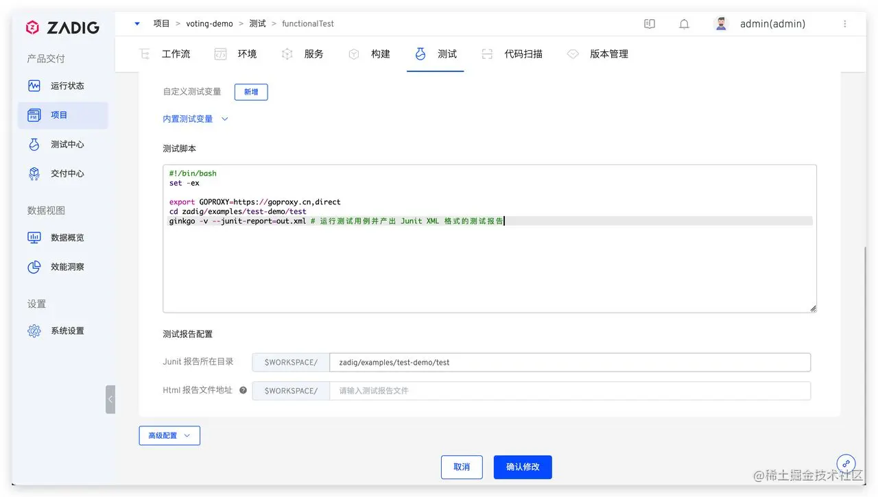 - Junit 报告所在目录: zadig/examples/test-demo/test