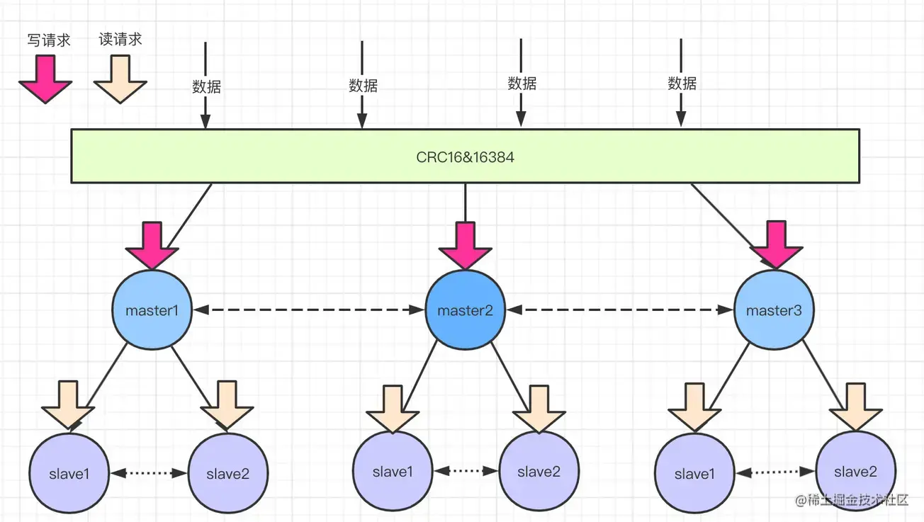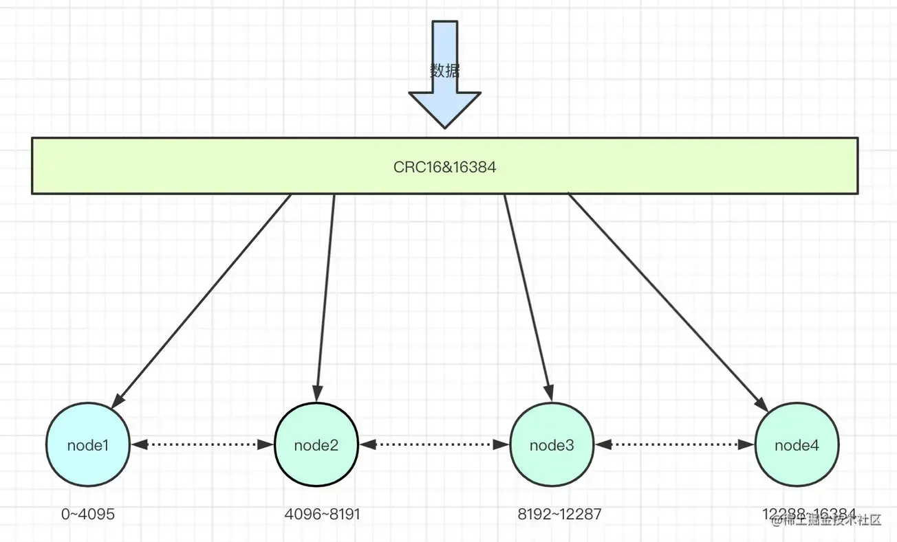 集群的键空间被分割为16384个slots(即hash槽),通过hash的方式将数据分到不同的分片上的。