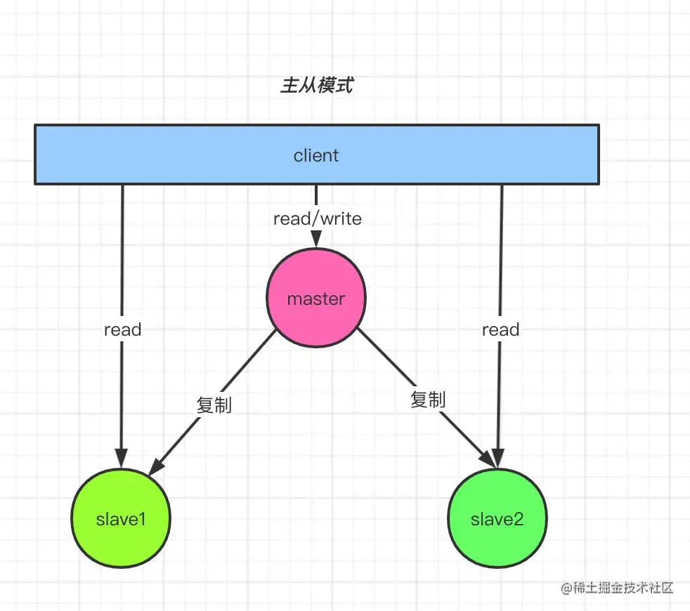 读请求分配给slave节点,写请求分配给master,数据同步从master到slave节点。