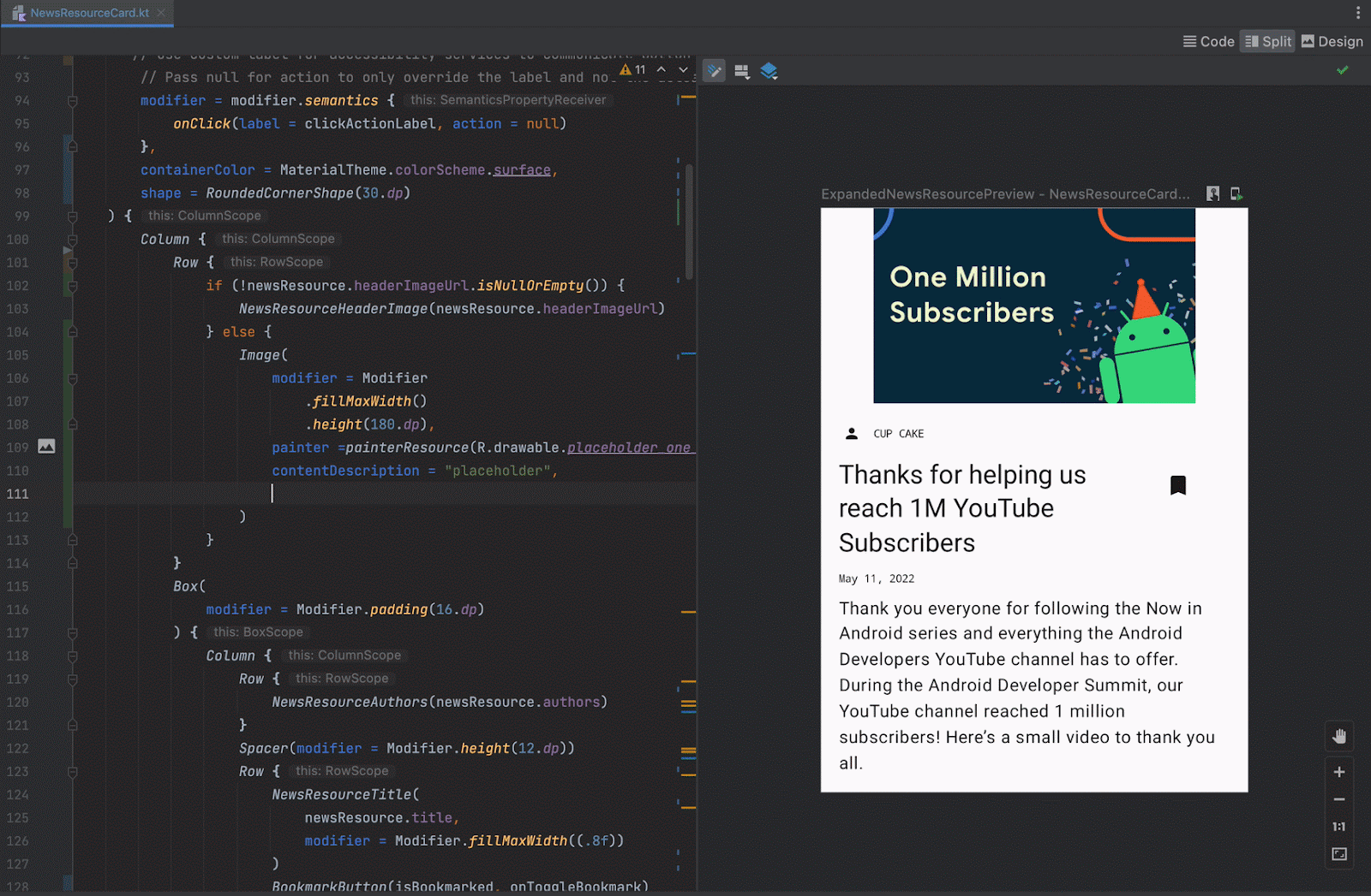 我们在今年的 Google I/O 大会上发布了 Compose 1.2 的第一个 Beta 版本,其中包含了许多特性和改进: