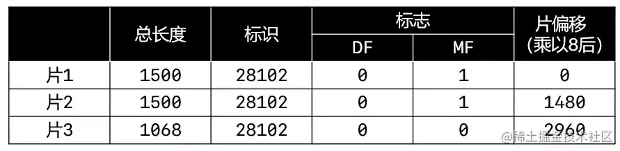 - 片偏移的长度表示的是数据的长度(不包含头部)