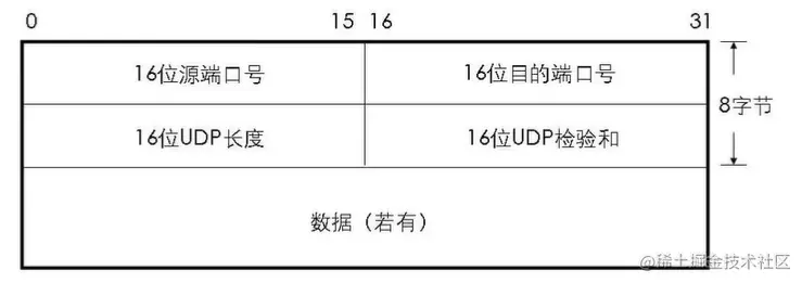 2个字节(源IP地址、目标IP地址、默认单个字节0,协议编号(UDP对应的是17)、UDP长度)