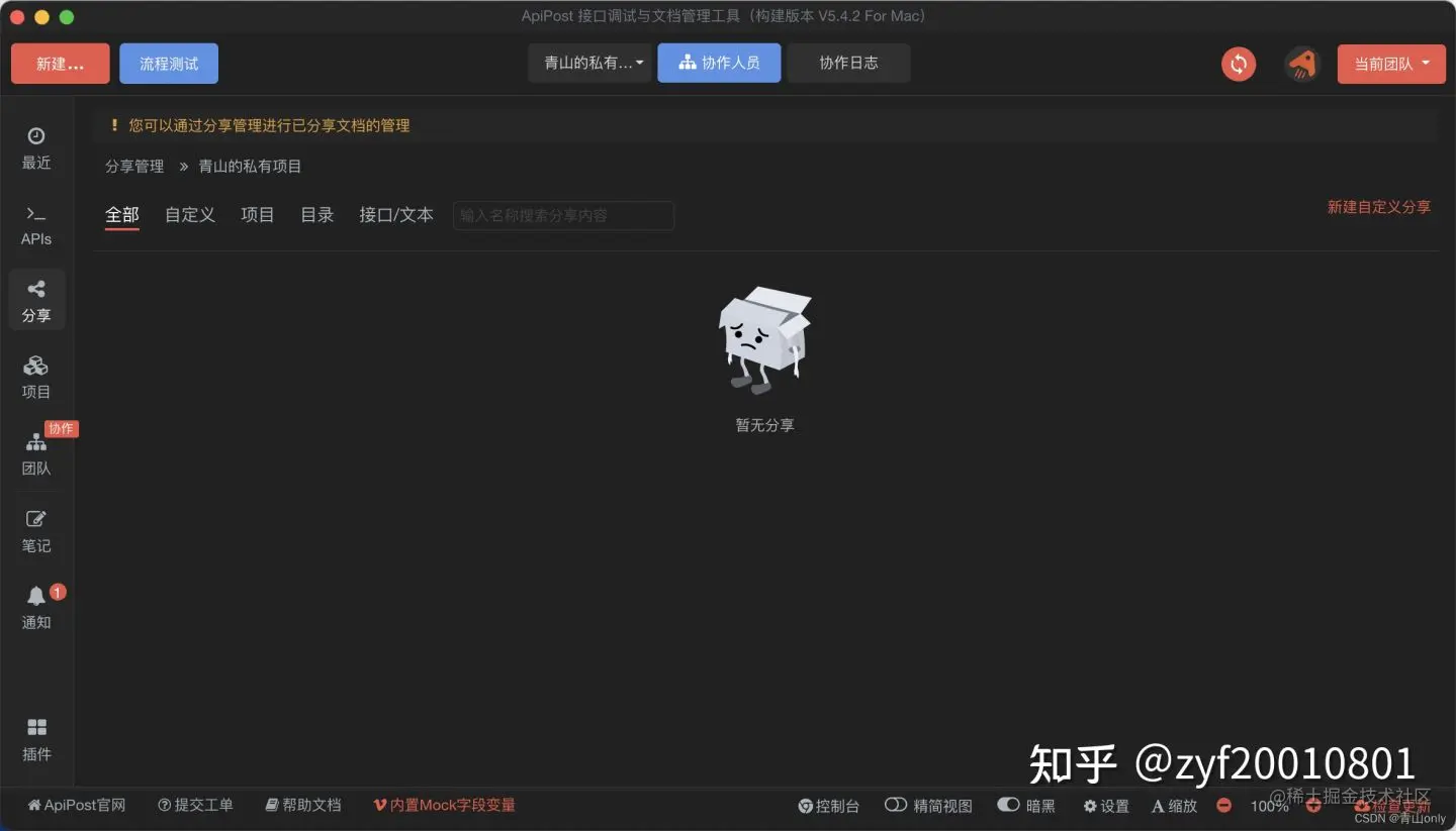 这个就是分享页面,可以对自己的接口进行内部的共享