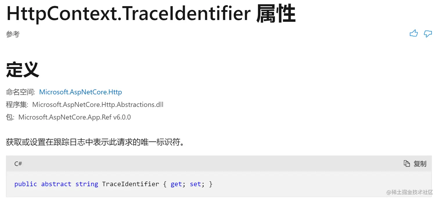 Asp.Net Core中有一个不受人重视的属性HttpContext.TraceIdentifier,它在链路追踪中非常有用,下面是官方的定义: