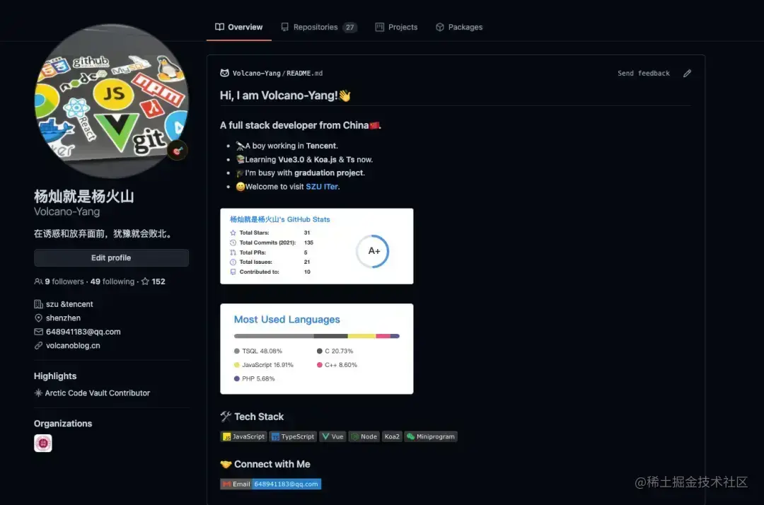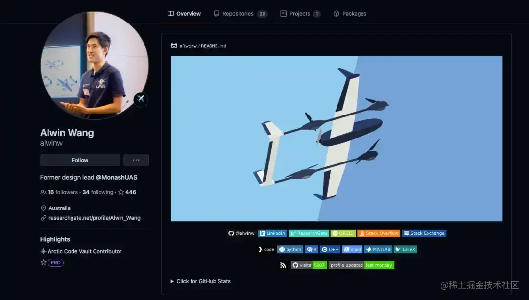 - 技术大佬型🤖:展示自己的技术栈、开源项目、最近文章
