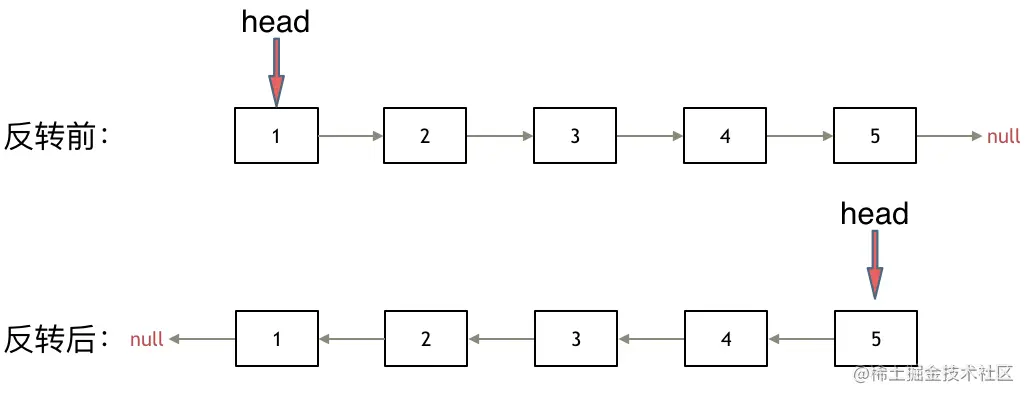 - 需要改变链表的next指针的指向,直接将链表反转 ,如图所示: