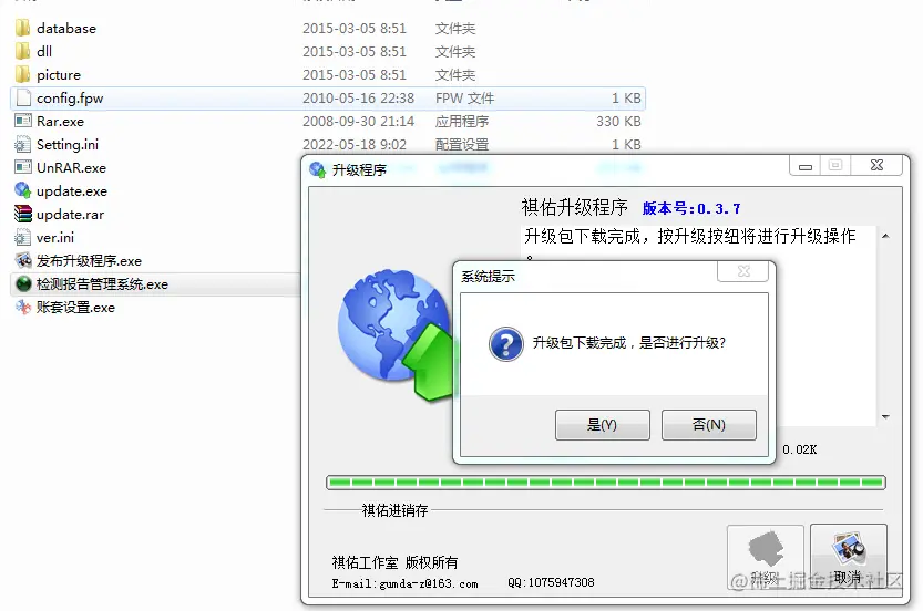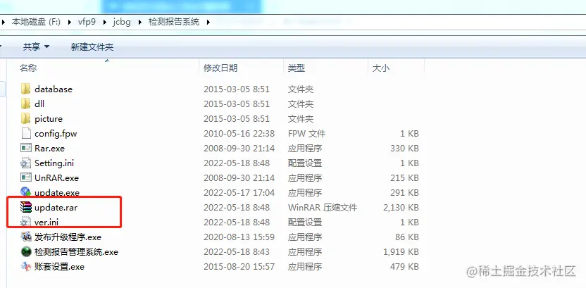 最后将update.rar与ver.ini复制"到检测报告管理系统"文件夹中