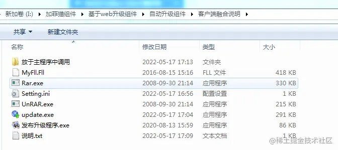 将第一步中的其它文件复制到这个文件夹中 rar.exe unrar.exe setting.ini update.exe,发布升级程序.exe 放于你的发布后的程序目录(myfll因为我的检测报告系统中已经有了,就不用复制了。)
