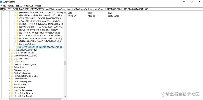 4):将刚刚新建好的项重新命名为{645FFO40——5081——101B——9F08——00AA002F954E}。