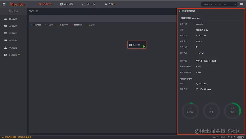 平台节点又叫控制节点,展示了平台整体的网络架构拓扑图,实时监控各个控制节点的健康程度,以及各个节点的资源利用率。