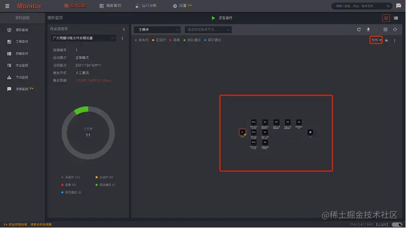 **9. 图形的缩放:**在面对大量作业组成的流程图中,页面不能完全显示所有作业关系。
