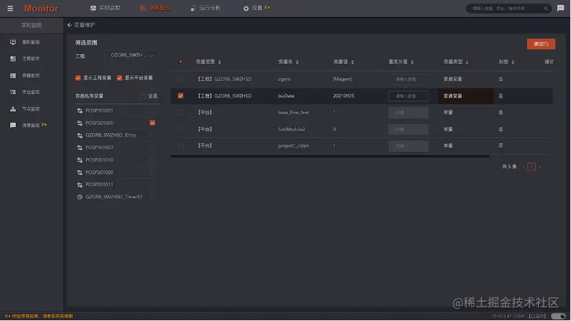 为即将启动的作业,重新设置运行时的工程变量和私有变量。平台变量不能变更运行值。