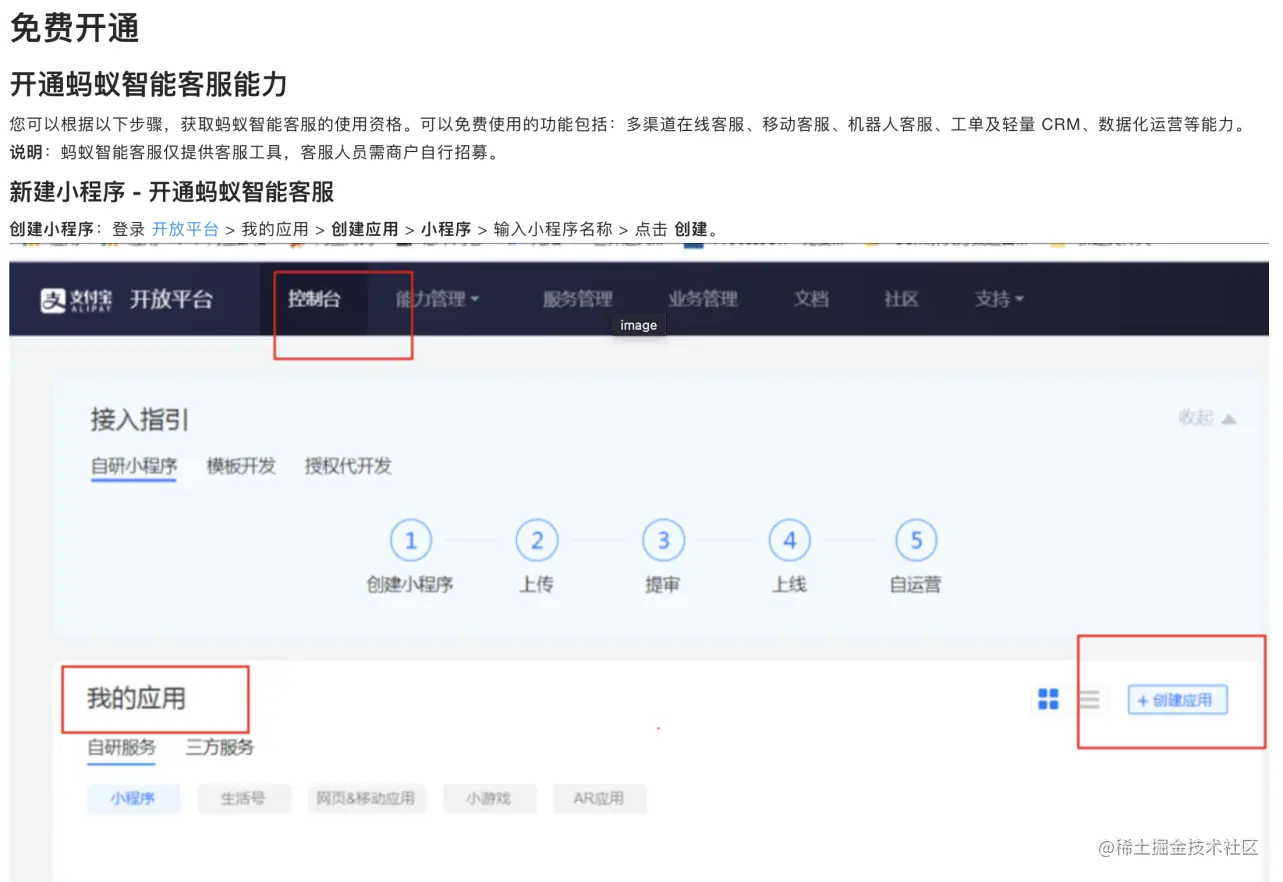 DOC_LINK 开发者中心控制台 - 点击开通蚂蚁智能客服