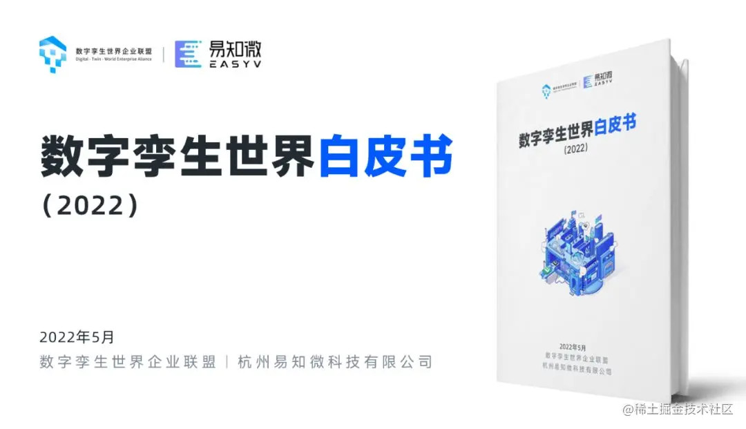 易知微一周年之际,我们首次发布了数字孪生世界企业联盟&易知微共同出品——数字孪生世界白皮书(2022版)。该“白皮书”全面介绍了数字孪生知识体系、“V”模型数字孪生世界方法论以及重点行业典型案例分享。