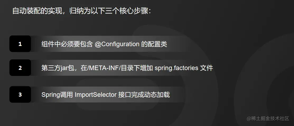 这样一个自动装配的实现,我把它归纳为以下三个核心步骤:
