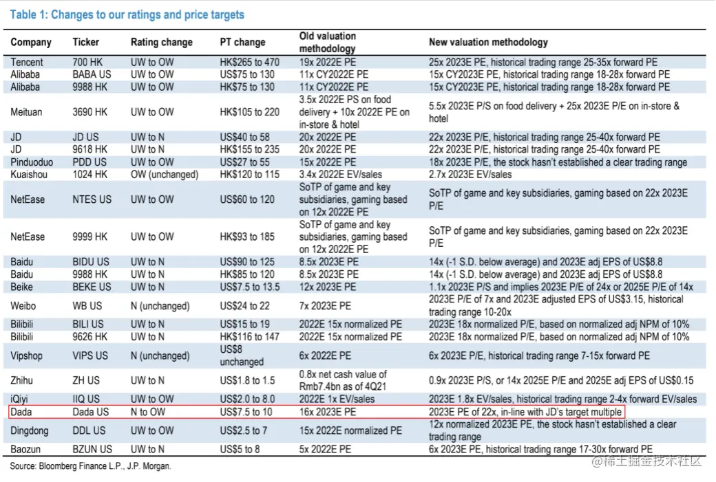 回到最开始的话题,5月16日,摩根大通集体上调多家互联网公司评级,其中就包括将达达集团评级上调至超配。