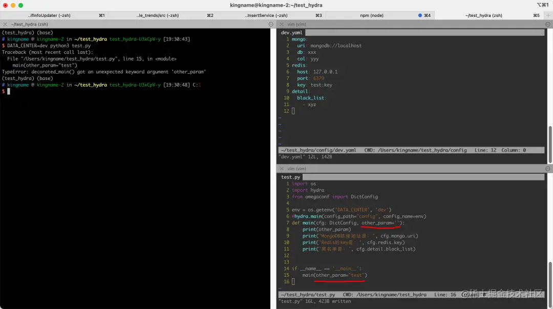 最后,我补充一个点。Hydra为什么不能在调用函数的时候,传递额外的参数,例如下面这样写就会报错: