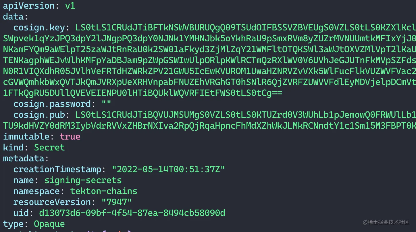 下面就是创建的包含了密钥的 secret。