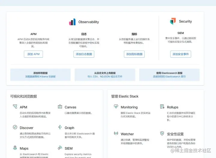 - 待启动后在浏览器上输入localhost:5601,展示如下图即安装成功