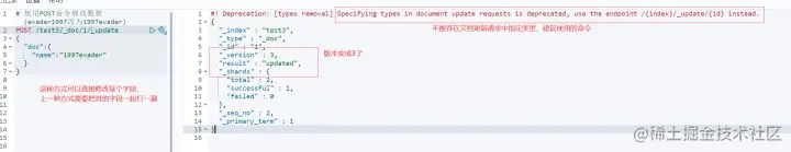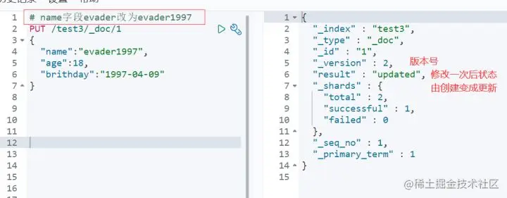 - PUT方式修改文档内容(类似于Map的覆盖)